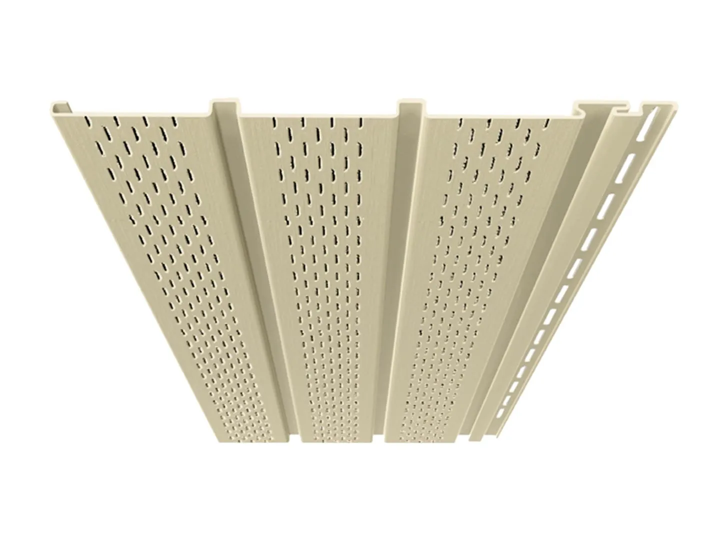 ฝ้าชายคาไวนิลที่ถูกออกแบบมาเป็นระบบ ให้มีลักษณะผสมผสานระหว่างระแนงไม้กับ ฝ้า แผ่นเรียบ โดยนำจุดเด่นของแต่ละสินค้ามาผสานกัน และออกแบบให้มีร่อง เมื่อติดตั้งแล้วจะดูคล้ายกับระแนง พร้อมรูระบายอากาศในตัวช่วยลดความร้อนจากชายคา ทำให้ บ้านเย็น อีกทั้งติดตั้งง่าย ประหยัดเวลา และเป็นฝ้าชายคาชนิดเดียวที่ไม่ต้องติดมุ้งกันแมลง