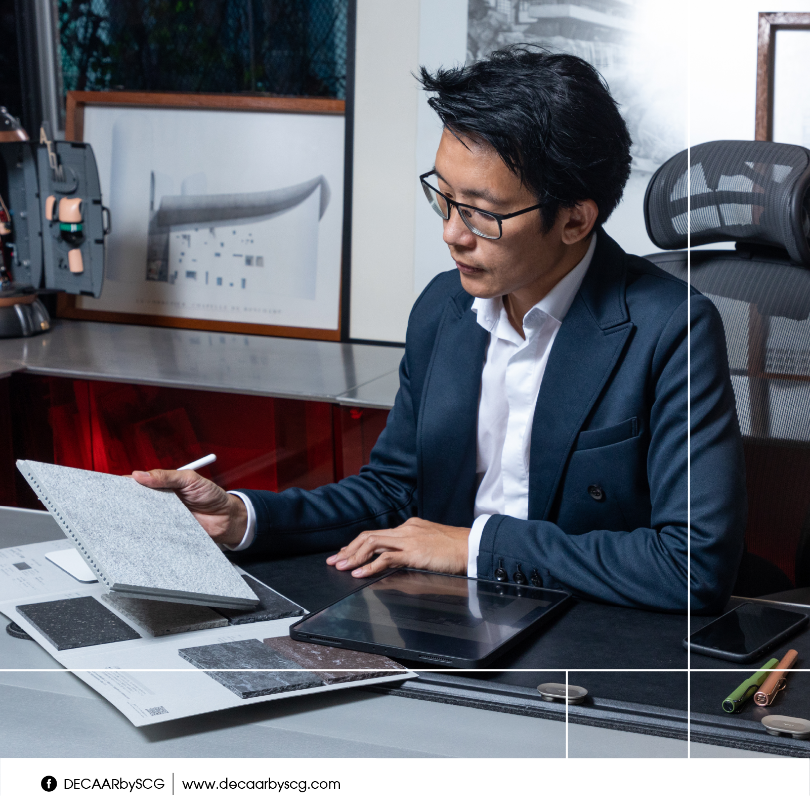 นอกจากความหลากหลายในการใช้งานที่ตอบสนองวิธีการ Compose Material ในรายละเอียดปลีกย่อยของสถาปัตยกรรมแล้ว วัสดุตกแต่งยังต้องตอบสนองความยั่งยืนที่ตรงกับความสนใจของคุณปอย ซึ่งต้องครอบคลุมไปถึงความยั่งยืนในเชิงพลังงาน ความยั่งยืนในเชิงการดูแลรักษา และเมื่อเกิดการรื้อถอนอาคารแล้ว วัสดุเหล่านั้นยังต้องนำไป Reuse หรือ Recycling ต่อได้อีกด้วย แถมภาพลักษณ์ที่ให้ความรู้สึกแบบ Timeless เพื่อให้อาคารยังคงทันสมัยอยู่เสมอ