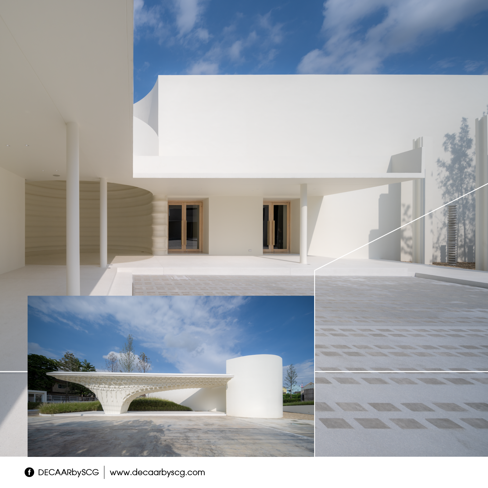 เมื่อมีวิธีการใช้งานทั้งภายในและภายนอกอาคารแล้ว วัสดุตกแต่งที่ตอบสนองความคิดสร้างสรรค์ได้อย่างหลากหลาย จึงกลายเป็นคีย์เวิร์ดสำคัญสำหรับพลอย นอกจากจะคงทน แข็งแรง เหมาะสมกับการใช้งานภายนอกแล้ว ยังต้องสามารถ Improvise หรือสามารถนำมาปรับใช้กับงานออกแบบสเกลเล็ก ๆ ที่ใกล้ตัวมากยิ่งขึ้น อย่างสเปซส่วนตัวภายในบ้าน หรือสเปซที่เชื่อมต่อระหว่างพื้นที่ภายนอกและภายใน รวมไปถึงนวัตกรรมที่เจริญก้าวหน้า เพราะเธอมองว่ามันจะทำให้ทุกความคิดสร้างสรรค์สามารถเกิดขึ้นจริงได้ และส่งผลให้สถาปนิกสามารถก้าวข้ามผ่านข้อจำกัดด้านการผลิตไปได้